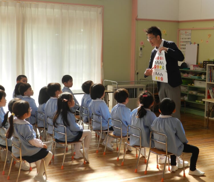 幼稚園の先生と、広いホールで身体を動かし、幼稚園のお友達が取り組んでいる“おしごと”を体験してみませんか?