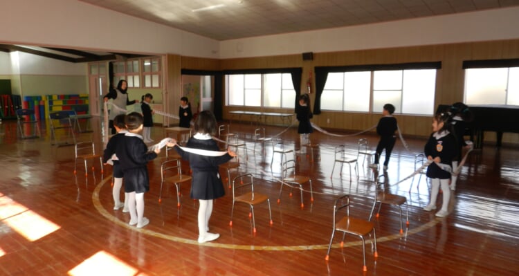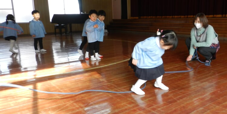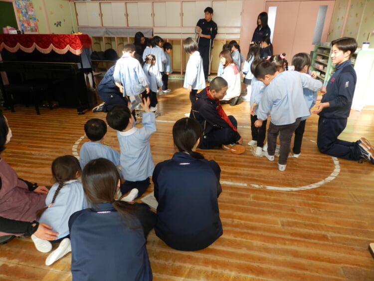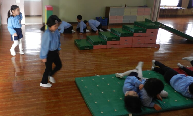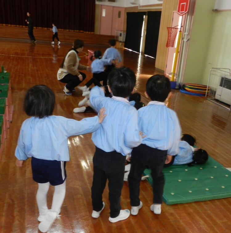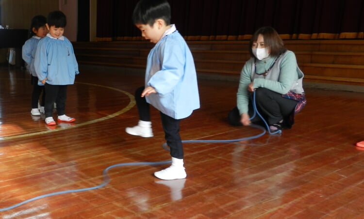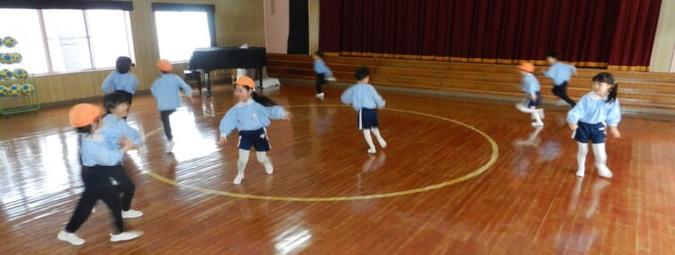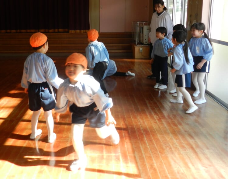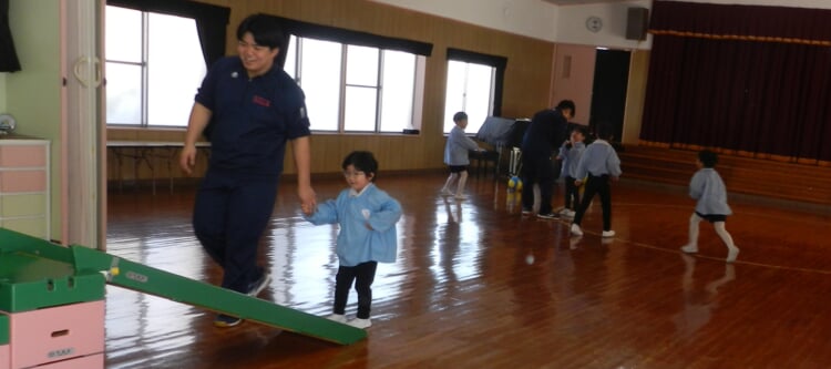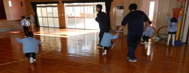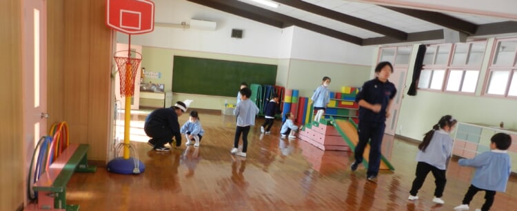 幼稚園の先生と、広いホールで身体を動かし、幼稚園のお友達が取り組んでいる“おしごと”を体験してみませんか?