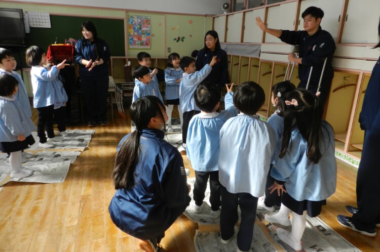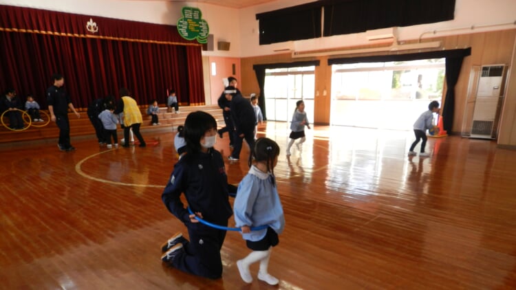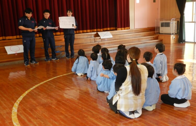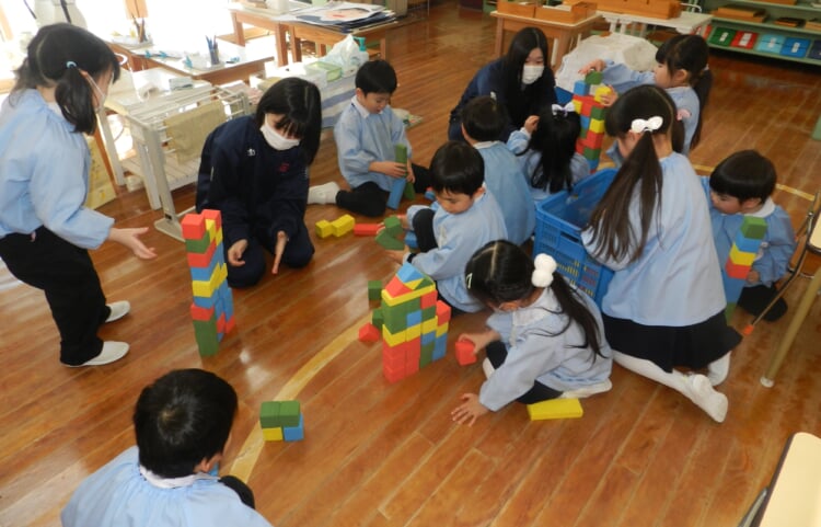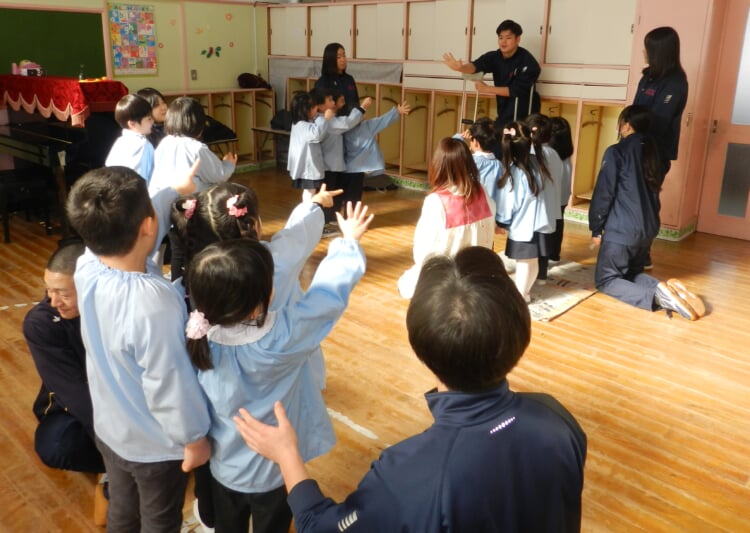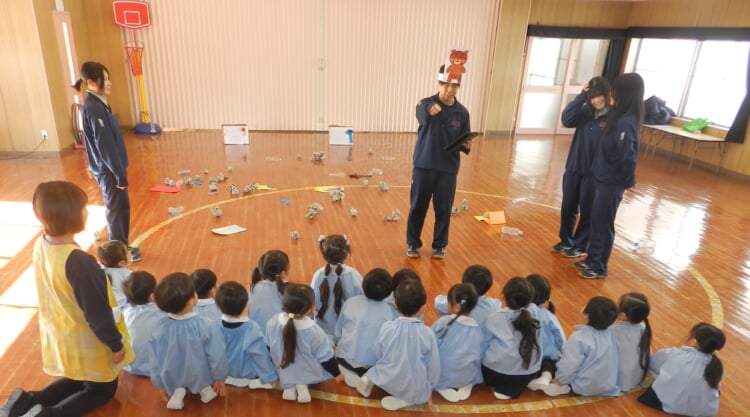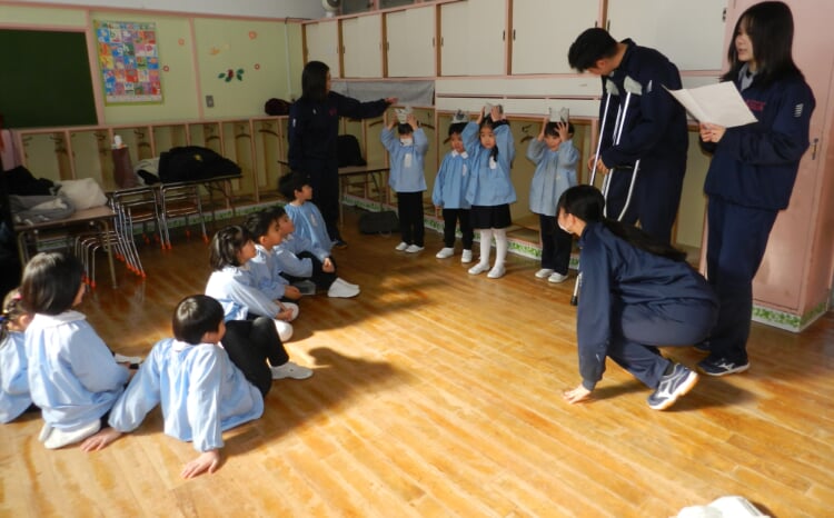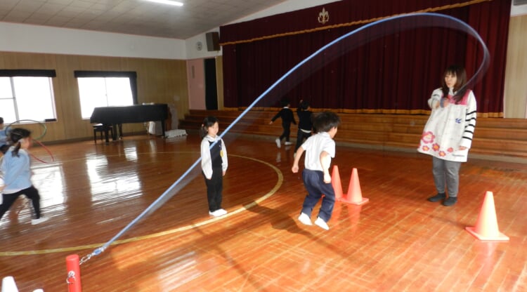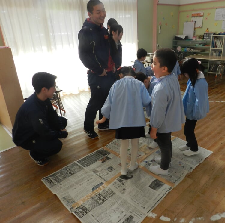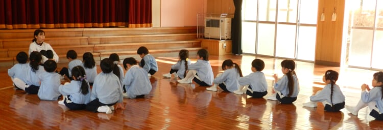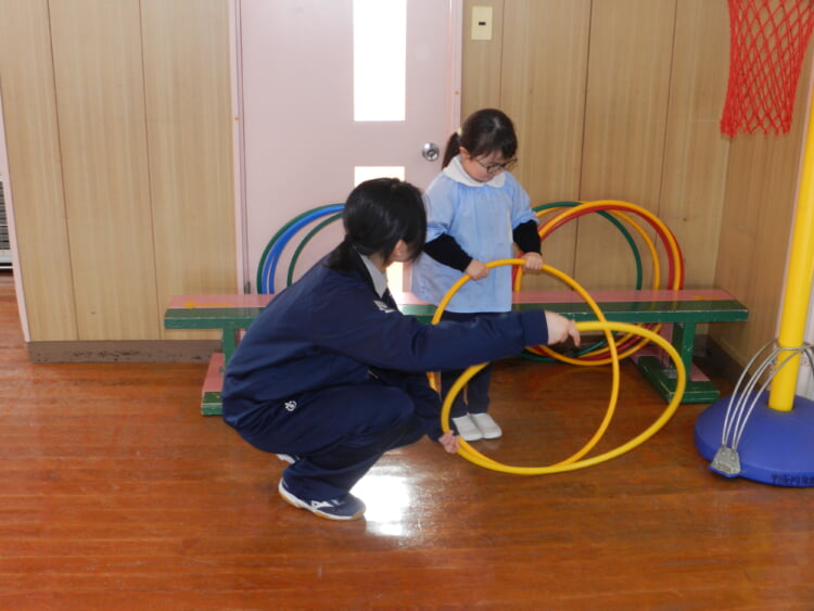 幼稚園の先生と、広いホールで身体を動かし、幼稚園のお友達が取り組んでいる“おしごと”を体験してみませんか?
