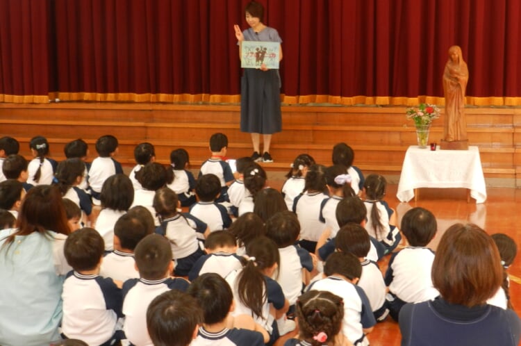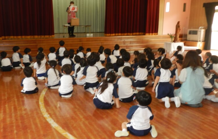「うた」と「お言葉」のプレゼントの後は、園長先生から「神様のお話」のプレゼントがありました。今回は「ノアの箱舟」
