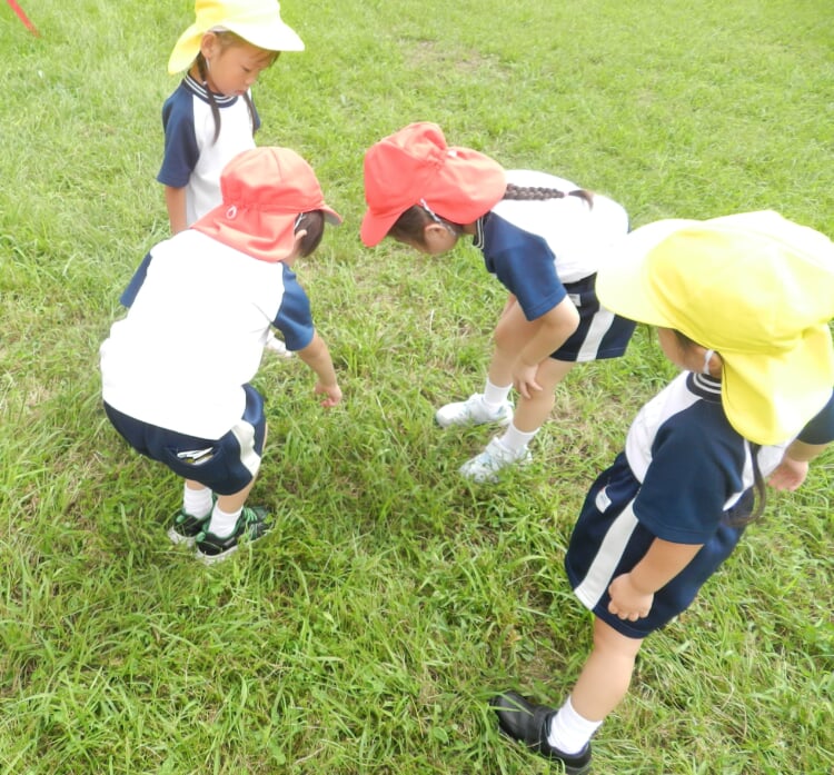 昨年、取り放題だったコオロギは、今年もたくさん跳びはね、かなりや組で飼育しているカマキリさんの餌となっています。飼育ケースにコオロギを入れた途端、捕獲するカマキリの姿を子ども達はじっと見つめていました。