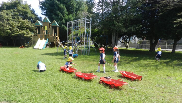 先生が間に入り、ワゴンをそこに置いたまま、別の遊びをしていると、「誰も使っていないワゴン」だと思って誰かが使うこともあるという事。「幼稚園のワゴン始め遊具は、みんなのもの」だから、他の子が使っても良い事。周りを見れば、「だれも使っていない遊具」があるかもしれない事を伝えると、その3番目お友達は頷き、だれも使っていないワゴンを見つけ手に取り、遊びが再開したのでした。