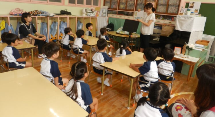 昨日の朝方 強い雨が降りましたが、天候が回復し、年中児年齢別参観日が開催されました。ご予約された皆様が笑顔で来園されました。