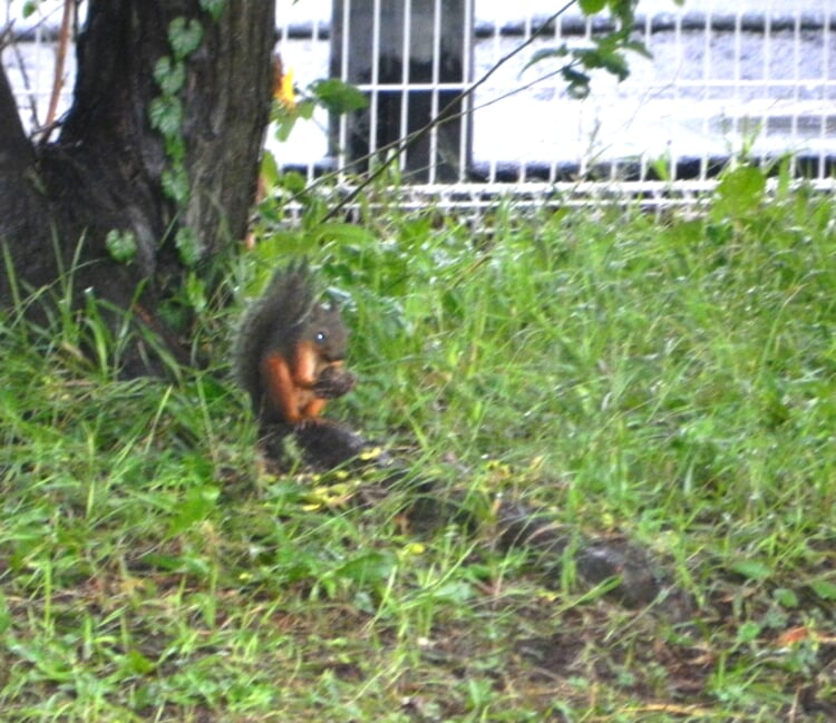アメリカシロヒトリの毛虫に葉っぱを食べられつくしてしまったクルミの木ですが、しっかりと実り、ウルスラっ子リスさんもしょっちゅう姿を見せてくれるようになりました。
