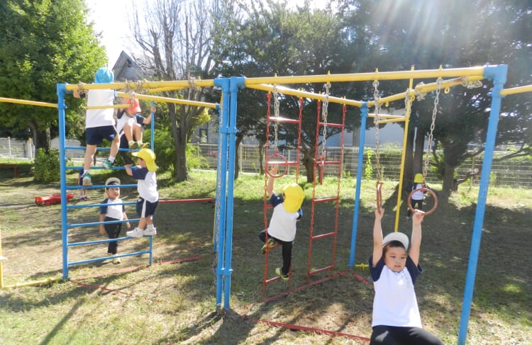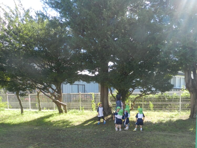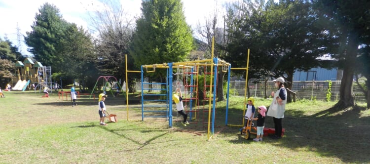 今日から10月。秋晴れの下、思いっきりお外遊びを楽しみましょう。 人気の赤いワゴンでお出かけしたり、にわとり姉妹に餌をあげたり。コカマキリも捕まえました。