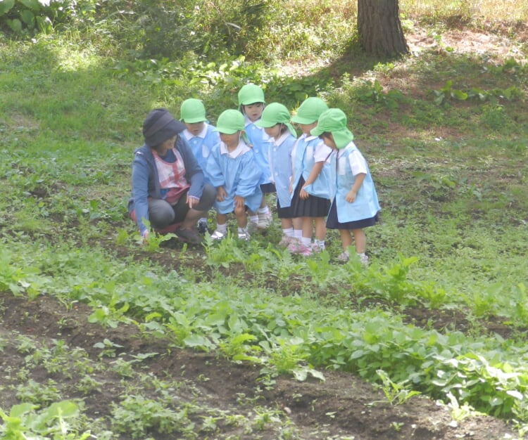 うっかり大根の葉を取ってしまった子もいましたが、根っこや葉っぱから大根の香りがすることを発見!! 大根…というよりは、葉っぱがメインの収穫になるかもしれませんが、神様からのお恵みの感謝し、収穫の時を待ちましょう。