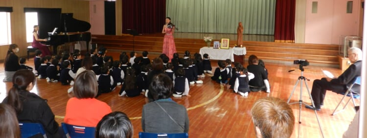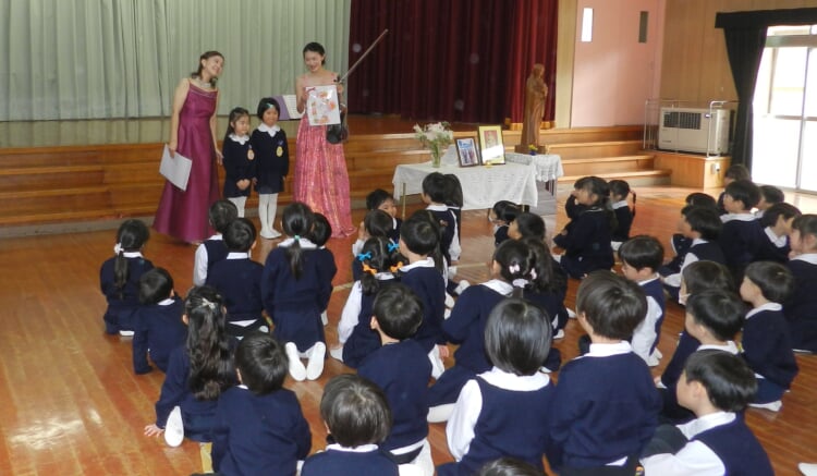 英語教育と音楽教育に力を入れている八戸聖ウルスラ学院。 ウルスラ学院幼稚園では、10月24日(金曜日)、『創立記念祈りの会』と共に『芸術鑑賞会』が開催されました。