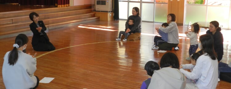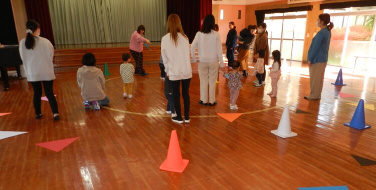 期待に胸を膨らませた保護者の方と小さなお客様がいらっしゃいました。 この日は、特別に2番目(年中児)さんがダンスのご披露をする予定で、数日前からリハーサルをしておりました。