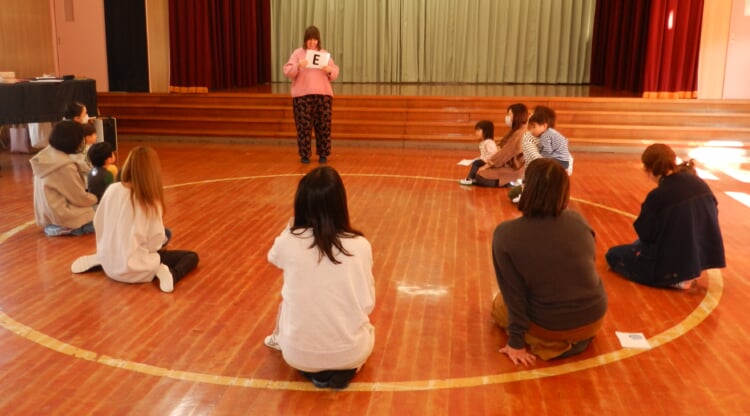 その後は、いよいよメーガン先生による「英語指導」です。 いつもHappyオーラを振りまいて下さるメーガン先生。 色やアルファベットなど楽しいレッスンとなりました。