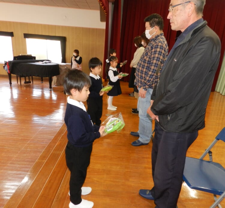 先日は、1番目(年長児)さんが売市交番と根城分遣所へ感謝のお心を届けに出掛けました。11月20日(木)は、2番目(年中児)が中心となって「勤労感謝の集い」を行いました。